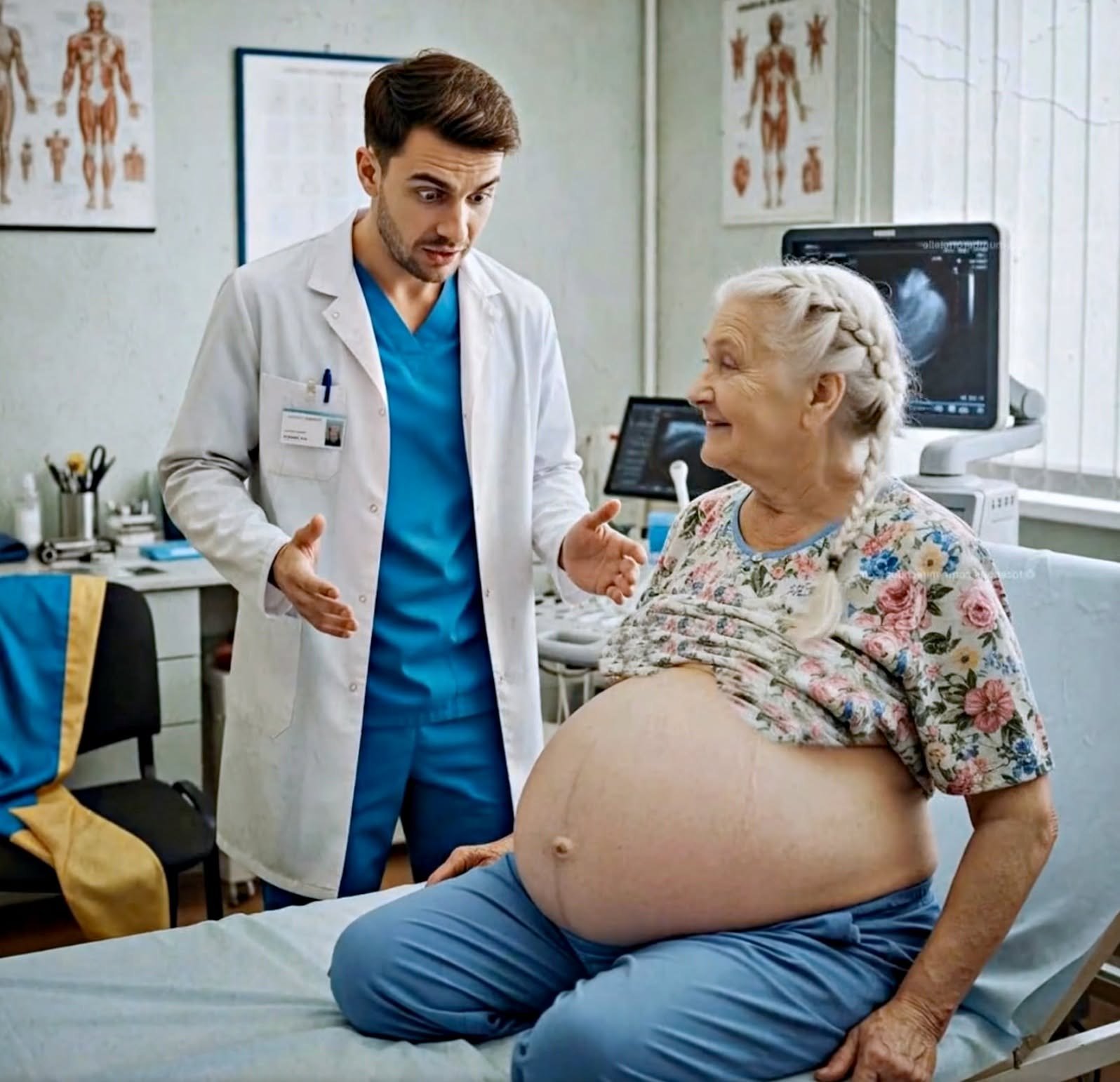 Quando, secondo i suoi calcoli, raggiunse il nono mese, decise finalmente di andare da un ginecologo per sapere come si sarebbe svolto il parto. Il medico rimase perplesso vedendo la sua età, ma iniziò comunque l’esame.