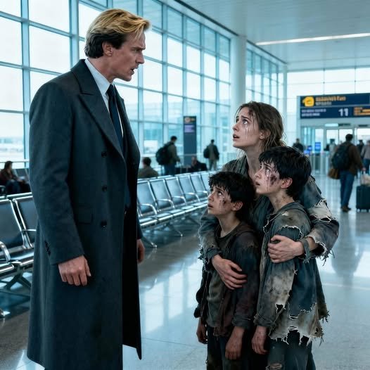 Seduta su una delle panche metalliche c’era Helena — raggomitolata, stringendo due bambini piccoli, un maschio e una femmina, gemelli di circa cinque anni. Un pacchetto quasi vuoto di biscotti veniva condiviso tra loro.