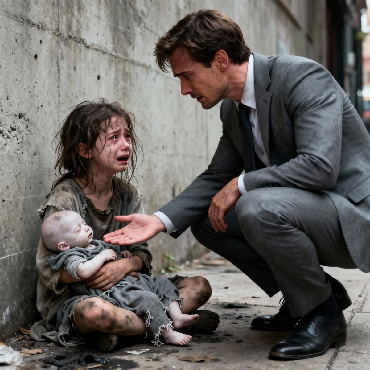 La bambina davanti a lui aveva il viso sporco di polvere, le guance segnate da lacrime secche e lo sguardo di qualcuno che aveva già perso molto più di quanto un bambino dovrebbe perdere. Ma nulla lo colpì quanto vedere quella neonata — così piccola, così fragile, così fredda — tra le sue braccia.